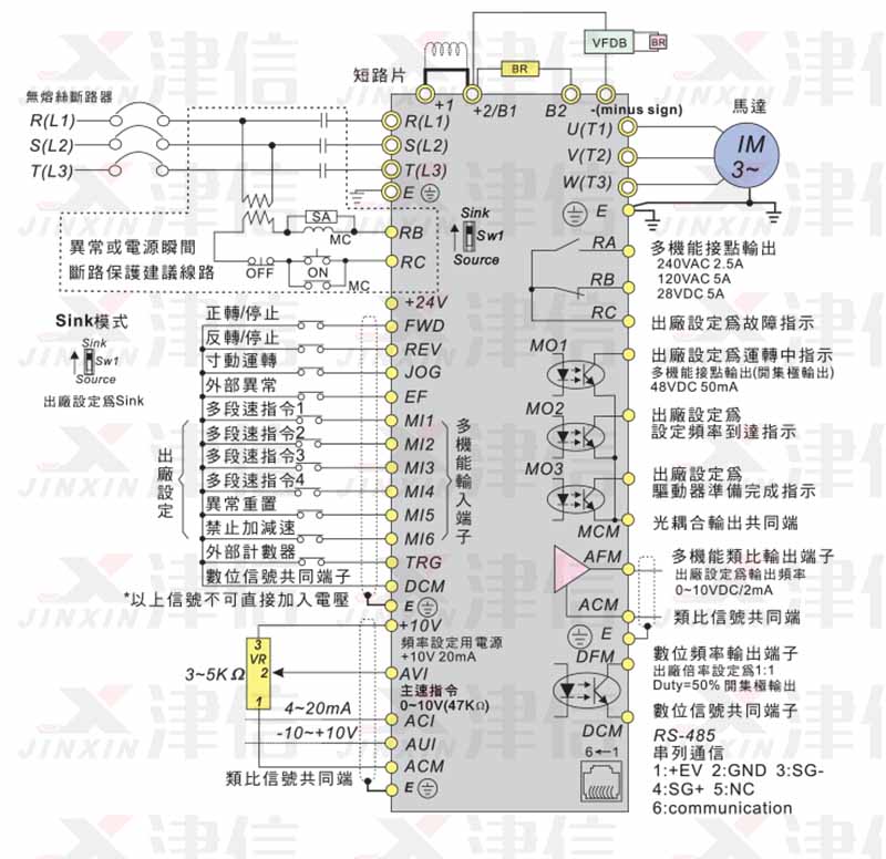 十、DELTA臺達VFD-VJ變頻器接線圖