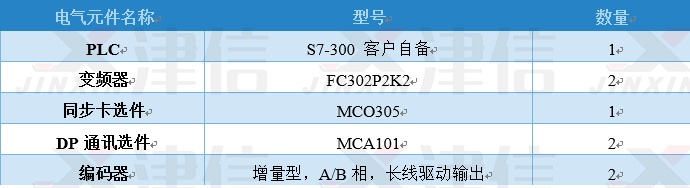 PLC與丹佛斯FC302變頻器之間進行PROFIBUS通訊,通過PLC可以設置同步功能、非同步功能、等工藝參數;FC302變頻器控制從機電機,以保證出標精度及響應精度。 變頻器通過MCO305運動控制卡,實現角度同步控制。MCO305運動控制卡內要編程,接收現場總線控制命令,發送各種狀態信號,實現各種控制,如單機運行/同步運行模式切換,判斷從機編碼器故障等。