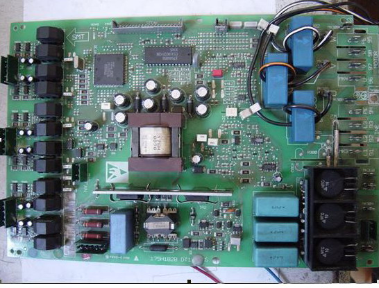 由于這幾臺(tái)VLT3000變頻器是小功率的,因此拆裝非常的方便。先檢查變頻器的主回路,測量整流模塊和逆變模塊特性良好。給變頻器的輸入端送交流電,發(fā)現(xiàn)變頻器的操作面板沒有顯示。等變頻器主回路上直流電壓釋放完全后,將變頻器的上蓋板拆下,接下來就露出來變頻器的控制卡,拆除變頻器控制卡上的兩根電纜連接線,取出控制卡。變頻器ILD卡就出現(xiàn)在我們的面前。將變頻器的ILD卡取出來做單板測試,發(fā)現(xiàn)變頻器操作面板沒有顯示,確定變頻器的ILD卡損壞。