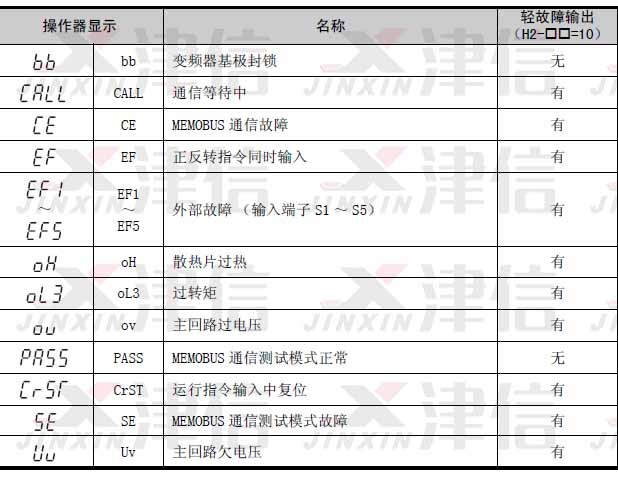 2、輕故障、警告報警代碼BB,CALL,CE,EF,OH,OL3,OV,PASS,CRST,ST,UV